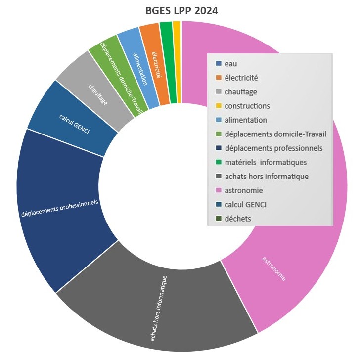 À l’initiative d’une dizaine de personnels, un groupe climat du LPP a été créé lors du conseil de laboratoire du 2 avril 2021. Ce groupe analyse l’empreinte des activités de recherche du LPP sur l’environnement chaque année et propose des pistes pour tenter de la réduire au Conseil de laboratoire et fait remonter des demandes à nos tutelles. Le dernier bilan effectué est celui de 2024. Le détail est accessible sur Labos1point5.